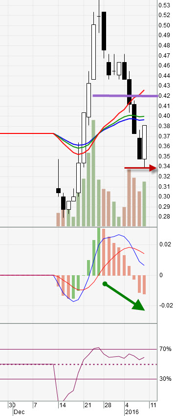 It will definitely need to cross over 42 cents with good volume in order for it to reverse this downtrend and head higher.